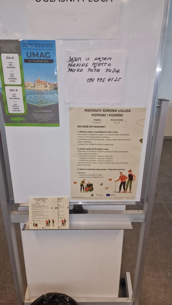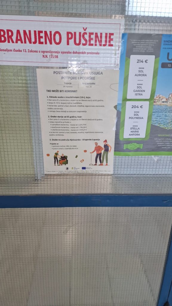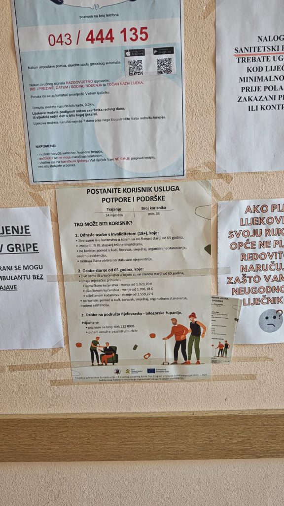 U sklopu projekta “Zaželi – Život u zajednici”, podijeljeni su informativni letci i postavljeni plakati na sljedećim lokacijama: Bjelovar